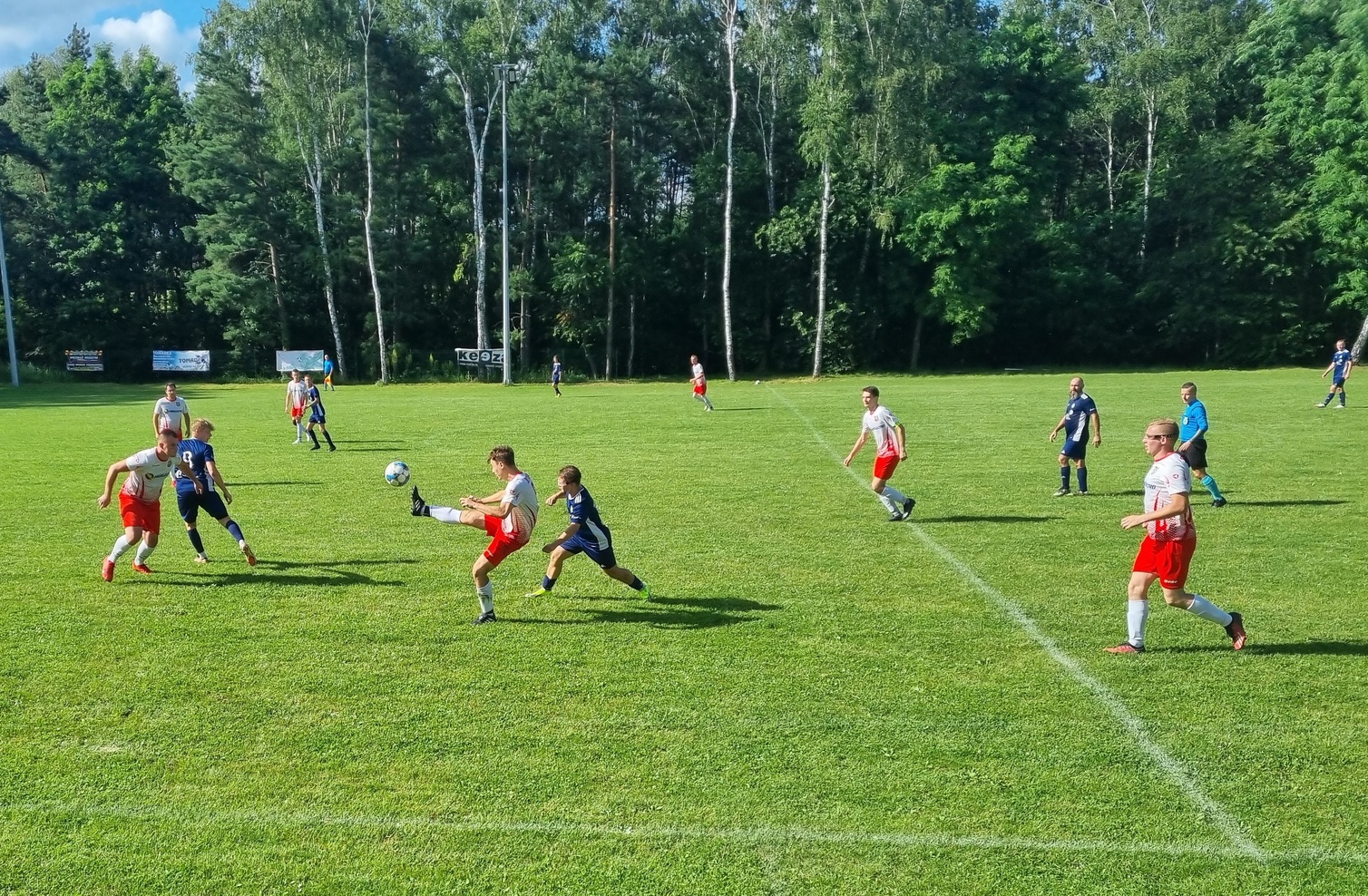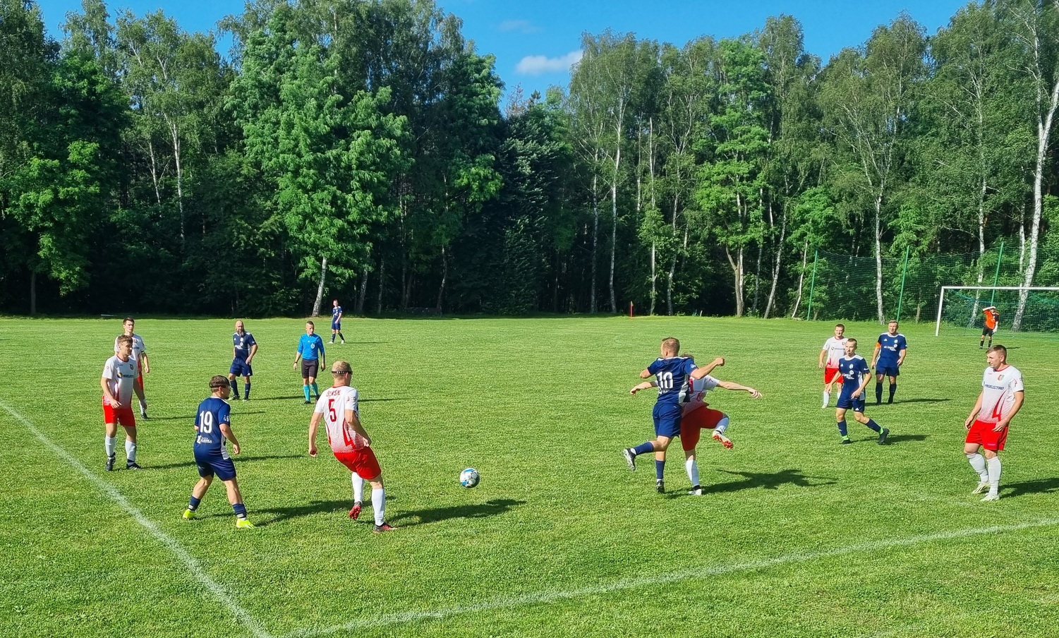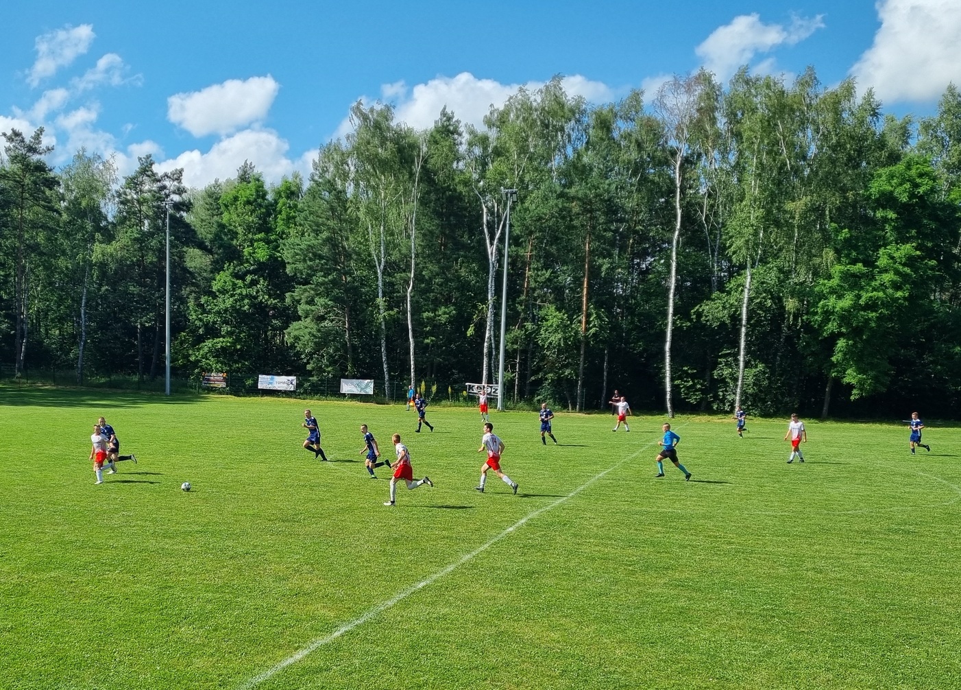 Mecz rozegrany został w słoneczne popołudnie w Zedermanie. Obie drużyny zaczęły ostrożnie, badając możliwości rywala. Z czasem zaczęła się jednak zaznaczać przewaga Błysku, który przejął kontrolę w środku pola. Stamtąd piłki wędrowały na skrzydła lub prostopadle wędrowały do napastników. Jedno z takich podań prawie zapachniało bramką. Sam na sam z bramkarzem Słowika znalazł się atakujący Zedermana, minął wychodzącego na przedpole golkipera i wydawało się że to musi być gol. Napastnik Błysku uderzył jednak tak, że piłka przetoczyła się tylko wzdłuż linii bramkowej. Kibice, których zasiadło tego dnia naprawdę sporo na trybunach, zawyli z zawodu.