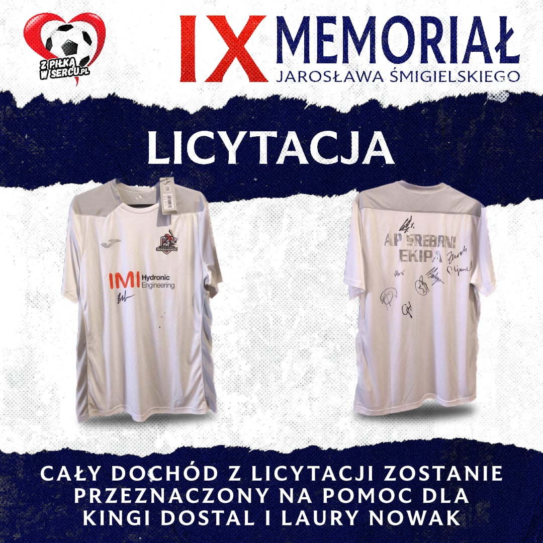 Szczególne podziękowania kierujemy do Prezesa Stowarzyszenia Akademia Piłkarska Srebrni Olkusz – Konrada Macudy za przekazanie koszulki na licytację oraz wsparcie inicjatywy IX Memoriału Jarosława Śmigielskiego. To kolejny przykład, że lokalne środowisko piłkarskie potrafi grać razem w ważnych sprawach.