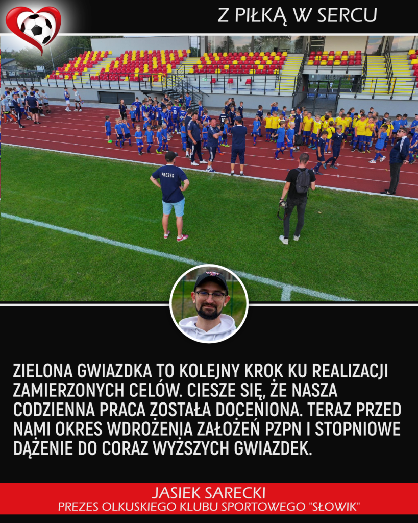 Zanim przejdziemy do rozmowy – na ręce Prezesa Klubu składamy serdeczne gratulację za Zielony Certyfikat PZPN dla Szkółki Piłkarskiej OKS Słowik Olkusz.